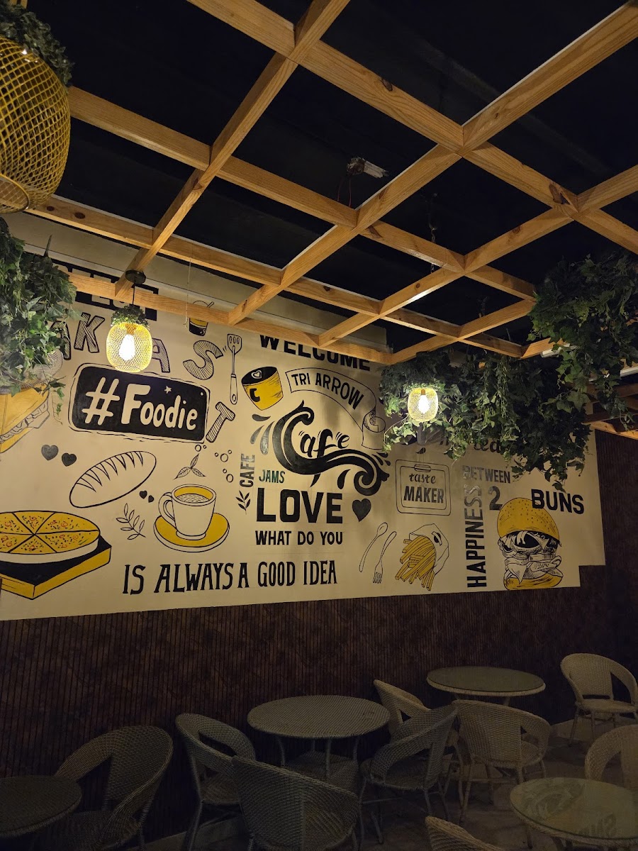 TRI ARROW CAFE sits quietly in the basement of Komal Tent House near Fazilpur mode in Farukh Nagar, offering a slice of casual dining centered around fresh, flavorful pizzas. The modest, tucked-away location gives it a no-frills atmosphere where the focus is clearly on good quality food rather than flashy decor.